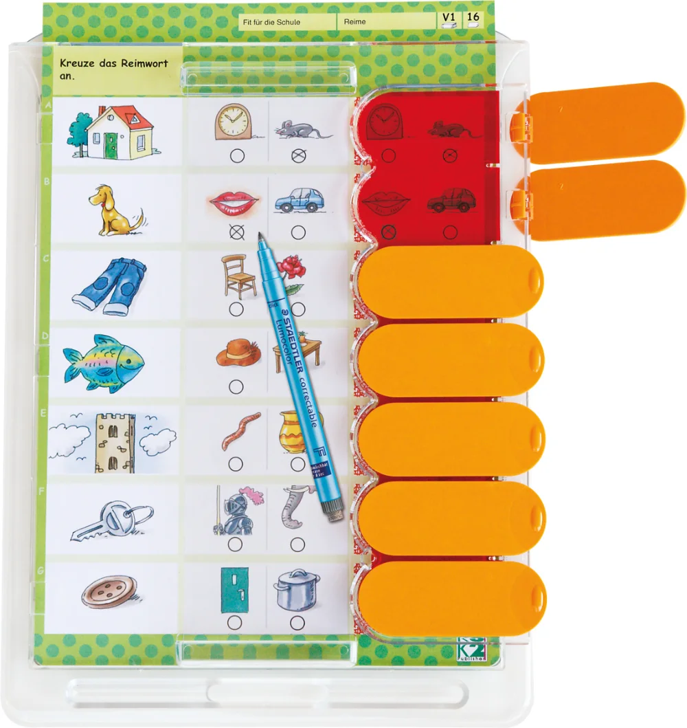Diese Motivation wird noch von der Tatsache unterstützt, dass die Kinder völlig selbstständig üben können. Selbst zum Überprüfen der Lösungen brauchen sie weder Eltern noch Lehrer. Durch Aufdecken der Kontrollklappen, was natürlich viel Spaß macht, wird die Richtigkeit der Lösung sofort bestätigt und das Vertrauen der Kinder in die eigene Leistung unmittelbar verstärkt.