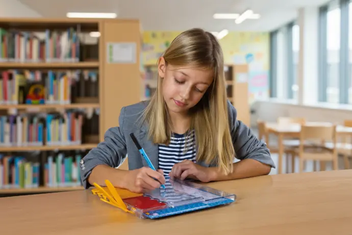 Einen weiteren, wichtigen Aspekt des Max Förderprogramms möchte ich hervorheben: Die Kinder lösen die Aufgaben nicht nur mündlich, sondern auch schriftlich – mit einem „Zauberstift“ auf einer Folie, die immer wieder abgewischt und dadurch beliebig oft wieder verwendet werden kann. Dieses schriftliche Ankern der richtigen Lösung unterstützt den Lernprozess ganz wesentlich und kommt besonders den Kindern zugute, die über das Handeln lernen und bevorzugt über den taktil-kinästhetischen Bereich Lerninhalte aufnehmen und abspeichern.